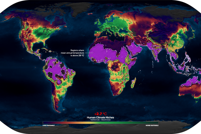 The research, published in the Nature Sustainability journal and released on Monday, looks at how countries are exposed to “unprecedented heat” that it describes as mean annual temperatures of 29 degrees Celsius (84.2 degrees Fahrenheit) or higher.