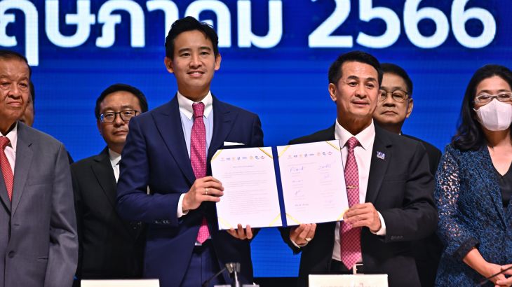 The coalition’s agreement includes most of Move Forward’s flagship policies, such as drafting a new, more democratic constitution, passing a same-sex marriage law, decentralising administrative power, and transitioning from military conscription to voluntary enlistment “except when the country is at war”.