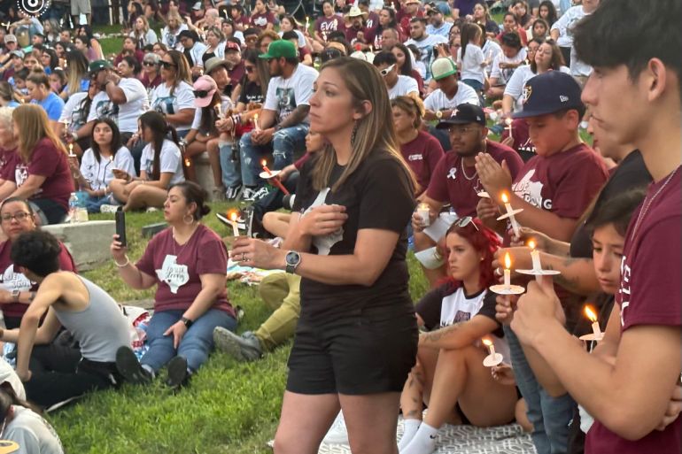 On Wednesday at the Uvalde Memorial Park Amphitheater, victims’ loved ones held a candlelight vigil to honour the fallen. Hundreds of people attended the observance. Many of the victims’ families wore shirts with photos of their dead family members. Some prayed. Some sang. Some cried.