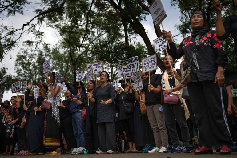 Saturday’s protest, organised by the women’s wing of the Indigenous Tribal Leaders’ Forum (ITLF), was believed to be attended by about 15,000 people in Churachandpur, a tribal majority city 65km (40 miles) south of the capital Imphal.