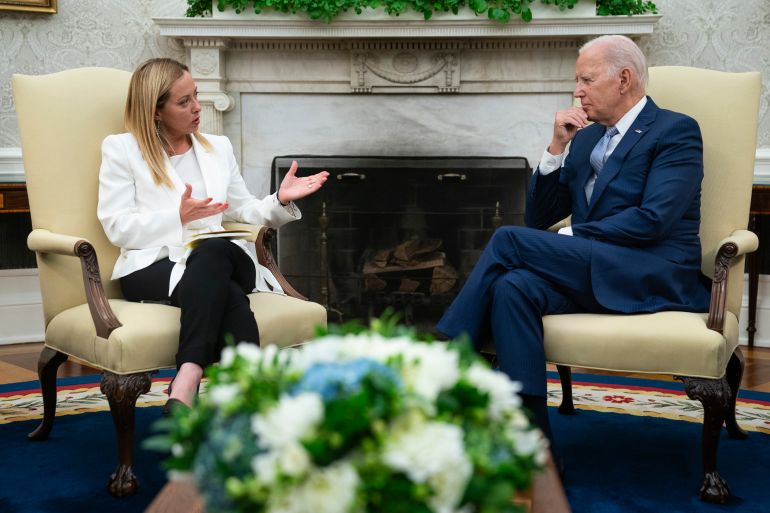 “And I thank the Italian people,” Biden told Meloni at the start of their talks at the Oval Office. “I want to thank them for supporting you and supporting Ukraine. It makes a big difference.”