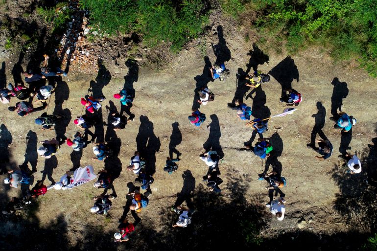 The annual 100km (62-mile) march held on Saturday retraces a route taken by thousands of men and boys from the Bosniak ethnic group, made up primarily of Muslims, who were slaughtered as they tried to flee Srebrenica after it was captured by Bosnian Serb forces late in the 1992-95 war.