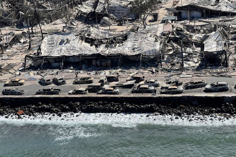 Governor Josh Green said the state was experiencing dry conditions due to climate change and, with a major storm passing south of the state, multiple blazes began to spread quickly and uncontrollably in what he called a “fire hurricane”.
