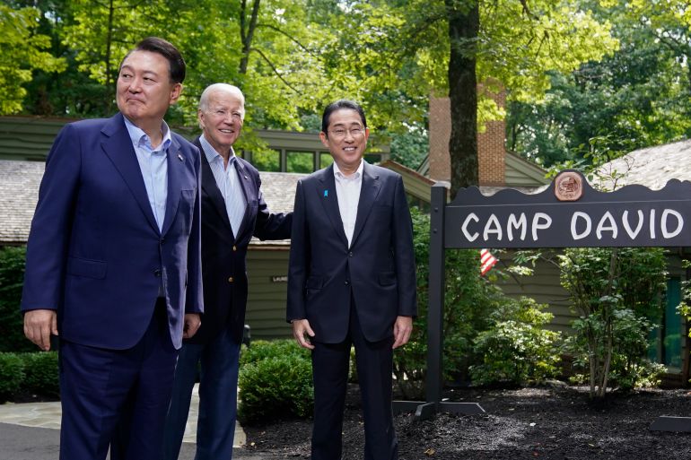 The event at the Camp David presidential retreat on Friday marked the first official meeting between US President Joe Biden, his South Korean counterpart, Yoon Suk-yeol, and Japanese Prime Minister Fumio Kishida.