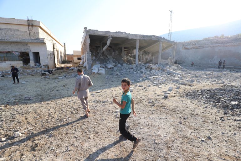 Two attacks took place late on Tuesday in Arri, west of the provincial capital Idlib, and hit the facility, where displaced Syrians had been living. An elderly man, Ahmad al-Khaled, and his 16-year-old grandson Taher were killed.