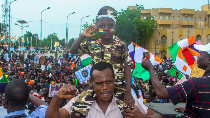 Move comes as thousands gather at a stadium in the capital Niamey in support of the coup-makers.