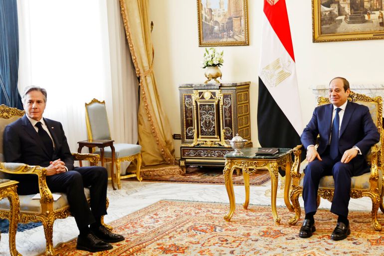 US Secretary of State Antony Blinken, left, meets with Egyptian President Abdel Fattah el-Sisi at Al Ittihadiya Palace in Cairo, Egypt, in January 2023 [File: Khaled Desouki/Pool via AP Photo]