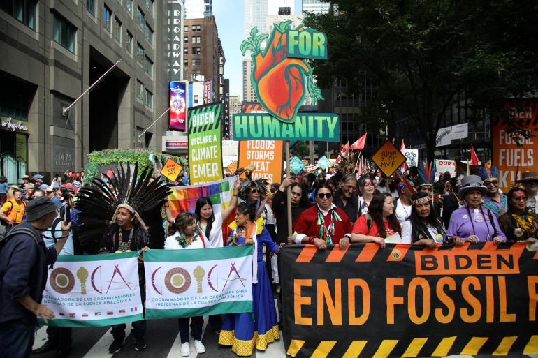 Many aimed their wrath directly at United States President Joe Biden who is seeking re-election next year, urging him to stop approving new oil and gas projects, phase out current ones and declare a climate emergency with larger executive powers.