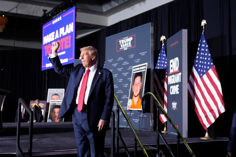 In his Friday night speech, Trump, a former president, repeated false and misleading claims about immigrants in the US, leaning into nativist sentiment as he campaigns for a second term.