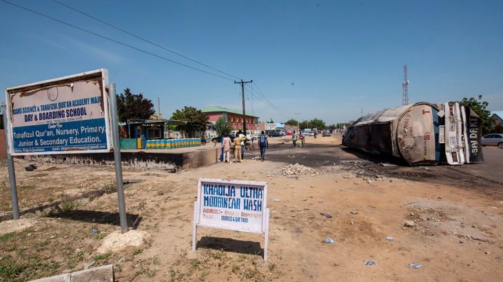 The tanker, which had travelled about 110km (68 miles) from neighbouring Kano state, veered to avoid colliding with a truck in the town of Majia, according to police.