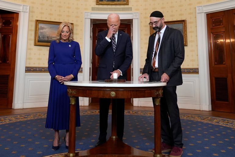 In a statement on Monday, Biden condemned the “unspeakable brutality” of the assault, which killed 1,139 people and saw about 250 others taken captive in the Gaza Strip.