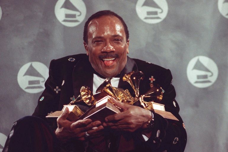 Jones kept company with presidents and foreign leaders, movie stars and musicians, philanthropists and business leaders. He toured with Count Basie and Lionel Hampton, arranged records for Frank Sinatra and Ella Fitzgerald, composed the soundtracks for Roots and In the Heat of the Night, organised US President Bill Clinton’s first inaugural celebration and oversaw the all-star recording of We Are the World, the 1985 charity record for famine relief in Africa.