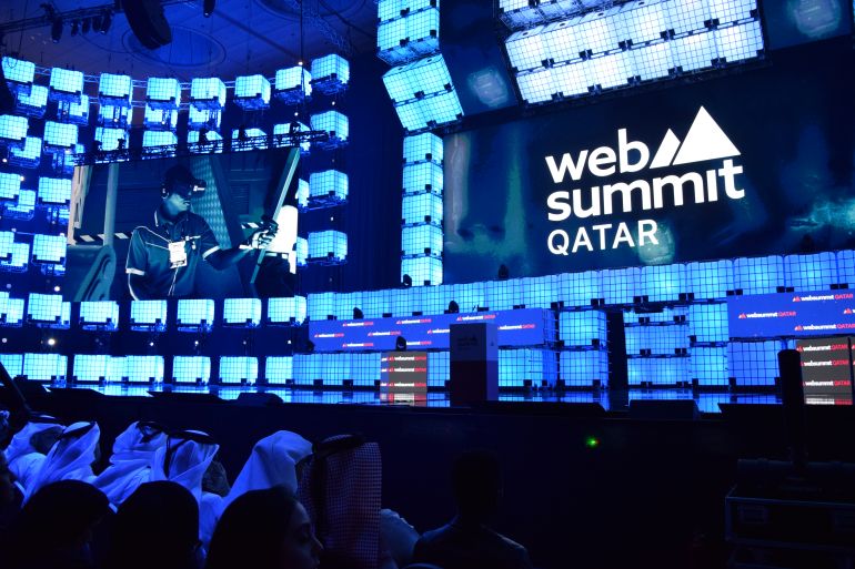 Doha, Qatar – Under blocks of flashing lights, entrepreneurs, investors and business leaders converged in central Doha on Monday as Web Summit, one of the world’s biggest tech conferences, opened in Qatar’s capital.