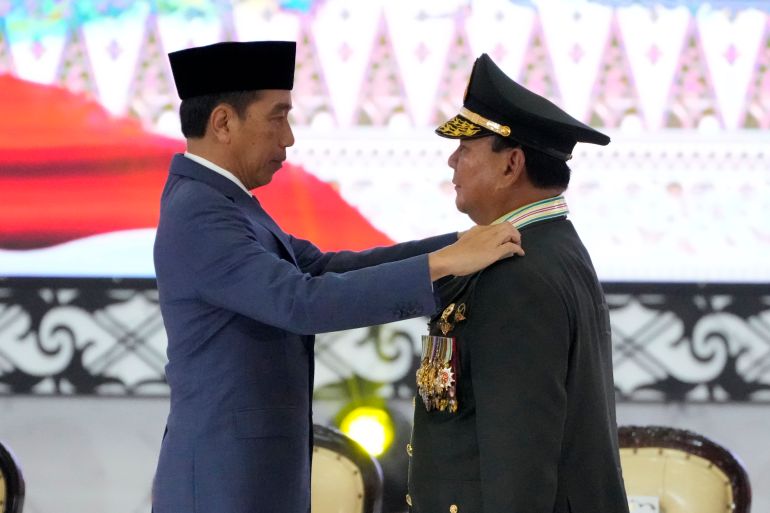 Indonesia’s outgoing President Joko Widodo has awarded his likely successor, Defence Minister Prabowo Subianto, an honorary four-star general rank.
