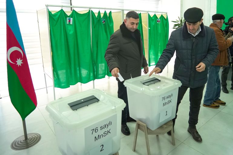 Voters cast their ballots earlier in the day in an election widely expected to give Aliyev another seven-year term after a military offensive last year brought the Armenian separatist region of Nagorno-Karabakh under his government’s control.