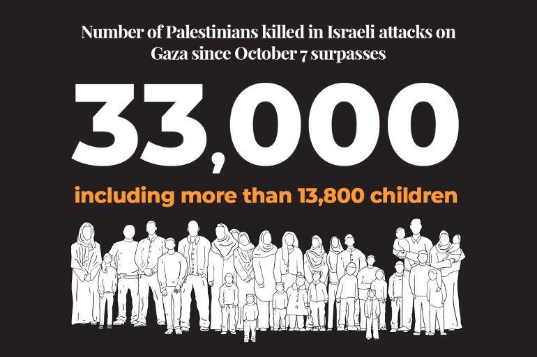 At least 33,137 Palestinians have been killed by the Israeli army in Gaza since the start of the war on October 7, the Ministry of Health in Gaza says.