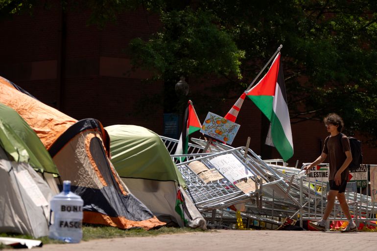 But some students, faculty and advocates say the attempts to dismantle the camps reveal biases about whose voices are prioritised on campus — and whose are blocked.