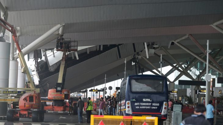 In addition to the roof, some support beams also collapsed, damaging cars in the pick-up and drop-off area at the terminal, the Press Trust of India news agency said.