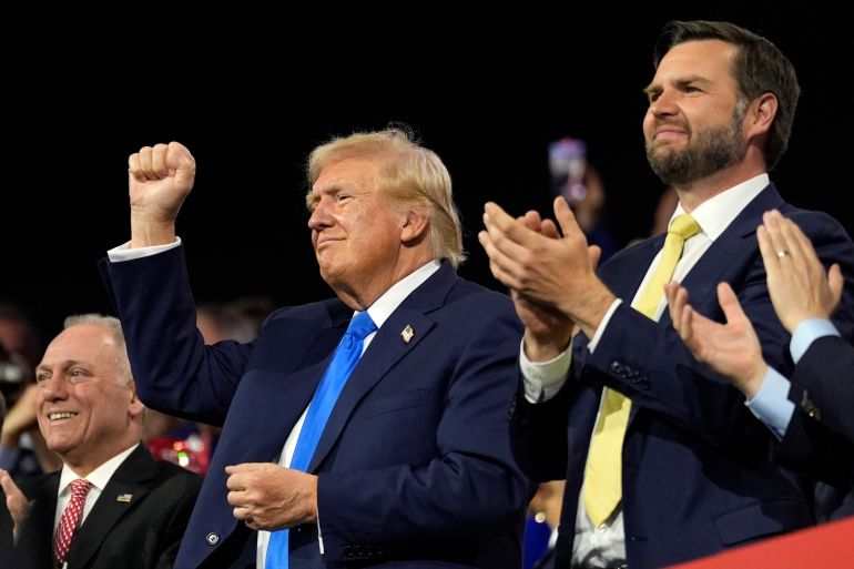 He opened his speech by praising the former president, using religious overtones and “God bless Donald J Trump!” for surviving the assassination attempt.