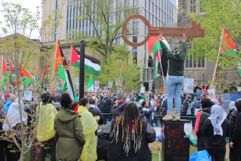 ![UOFT encampment [Courtesy of Sara Rasikh]](https://www.aljazeera.com/wp-content/uploads/2024/07/WhatsApp-Image-2024-07-26-at-2.44.06-PM-1722324912.jpeg?resize=770%2C513&quality=80)