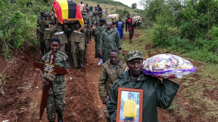 Ugandan Olympic runner Rebecca Cheptegei, who died after being doused in petrol and set on fire by her former partner, has been buried with full military honours at her ancestral home in Uganda’s northeast.