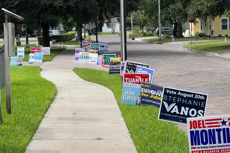 ![School board primary candidate signs outside a polling place in Orlando, Florida, August 20, 2024. [Gabrielle Russon]](https://www.aljazeera.com/wp-content/uploads/2024/09/unnamed-2-1726670479.jpg?resize=770%2C513&quality=80)