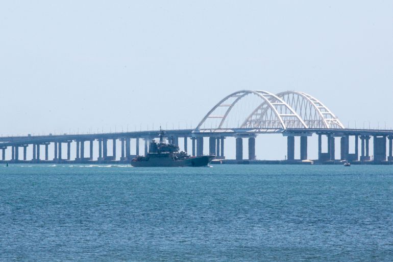 Kyiv, which previously attacked the bridge, wants it demolished. It asserts that Russia built it deliberately low to keep international ships out while allowing smaller Russian vessels through the strait, which connects the Sea of Azov to the Black Sea.