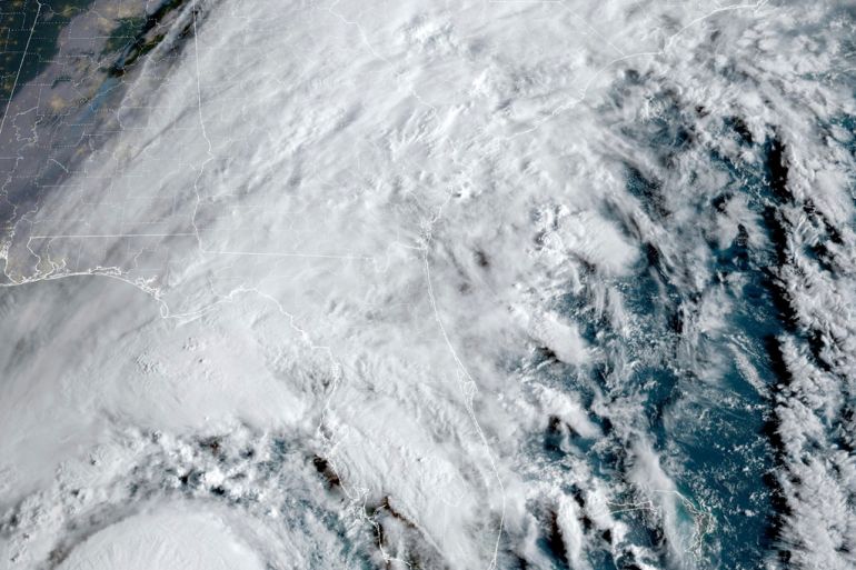 ![Jerry McCullen, top of ladder left, and Carson Baze, top of ladder right, put plywood over the windows of a house ahead of Hurricane Helene, expected to make landfall Thursday evening, in Alligator Point, Fla., Wednesday, September 25, 2024. [AP Photo/Gerald Herbert]](https://www.aljazeera.com/wp-content/uploads/2024/09/AP24269562524681-1-1727359770.jpg?w=770&resize=770%2C513&quality=80)