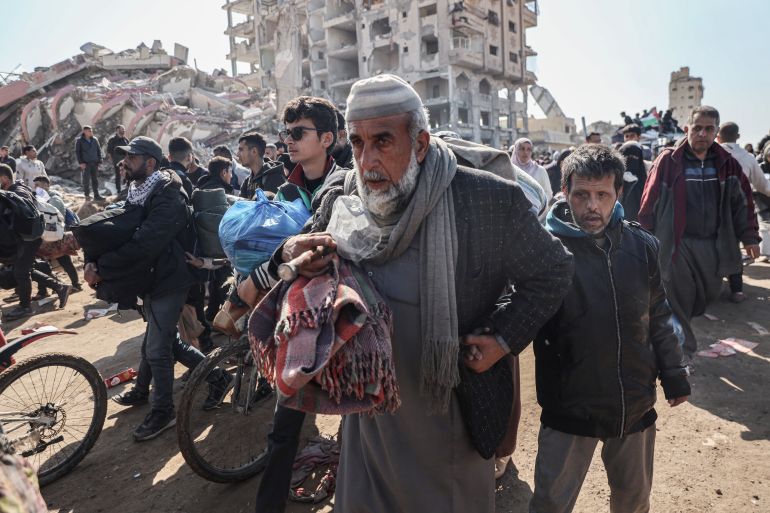 Rifaat Jouda doesn’t pretend that he isn’t tired. He started his journey in the morning in southern Gaza, in Khan Younis’s al-Mawasi, where his family had been displaced for 15 months during Israel’s war on Gaza.