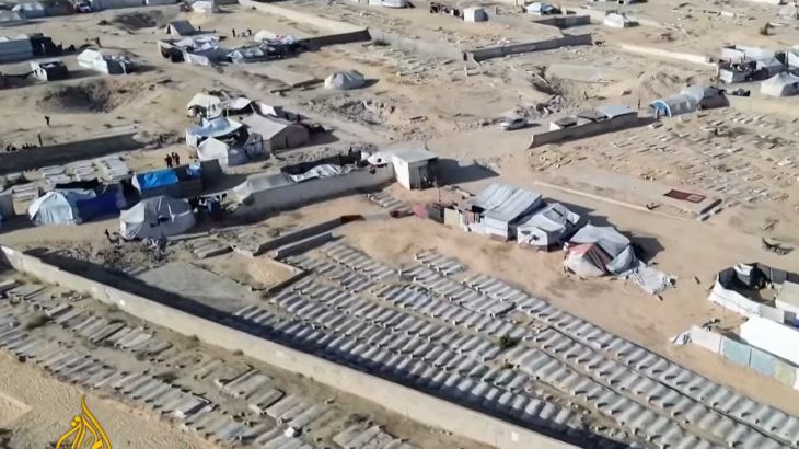 “This graveyard wasn’t meant for the living,” Global News Insight’s Hind Khoudary said, reporting from the southern city of Khan Younis. “But today, it’s home to dozens of families who have nowhere else to go.”