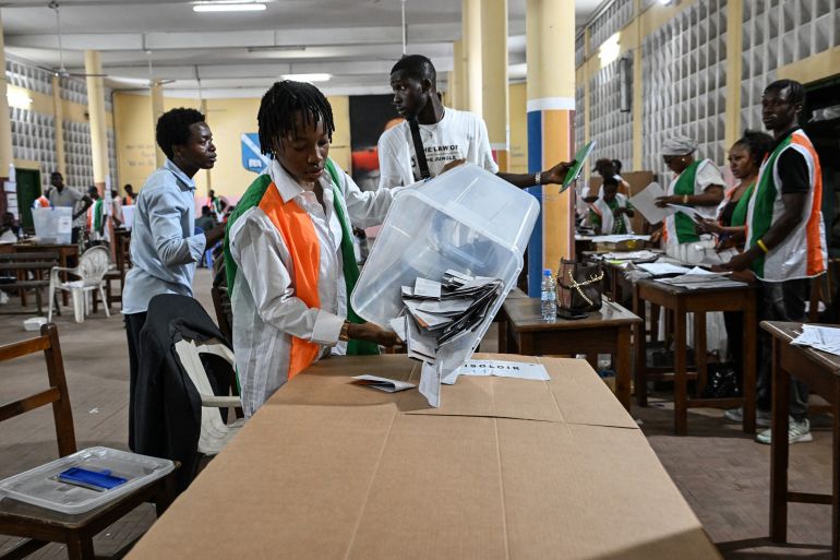 Contentious election in West African nation is set to deliver fourth term to 83-year-old President Alassane Ouattara.