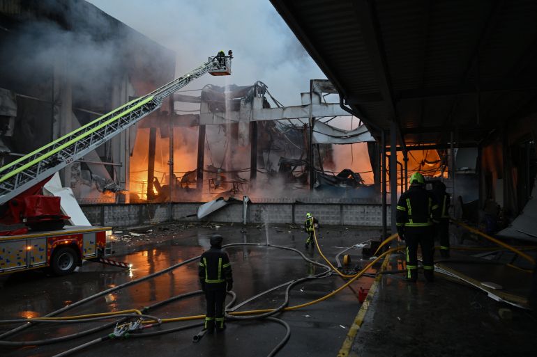 Ukraine’s State Emergency Service said a blaze erupted in a non-residential building in one location as a result of the attacks, while debris from intercepted missiles fell in an open area at another site, damaging windows in nearby buildings.