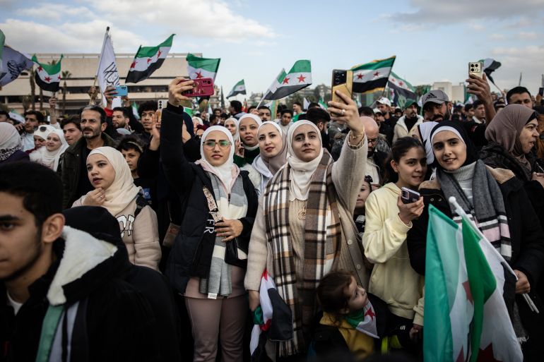 Syria’s President Ahmed al-Sharaa told large crowds in Damascus on Monday that the country had turned the page from a “dark chapter” in its history and now “looks towards a promising future”.