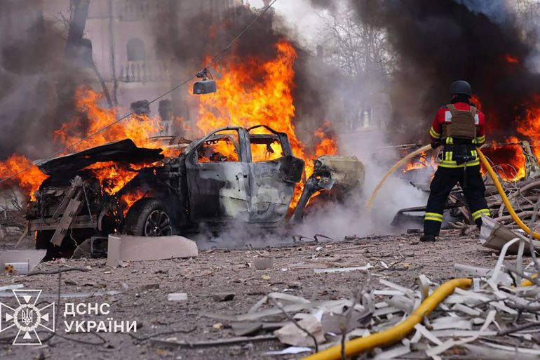 Videos posted from the scene on official channels showed bodies on the ground amid debris and smoke around central Sumy.