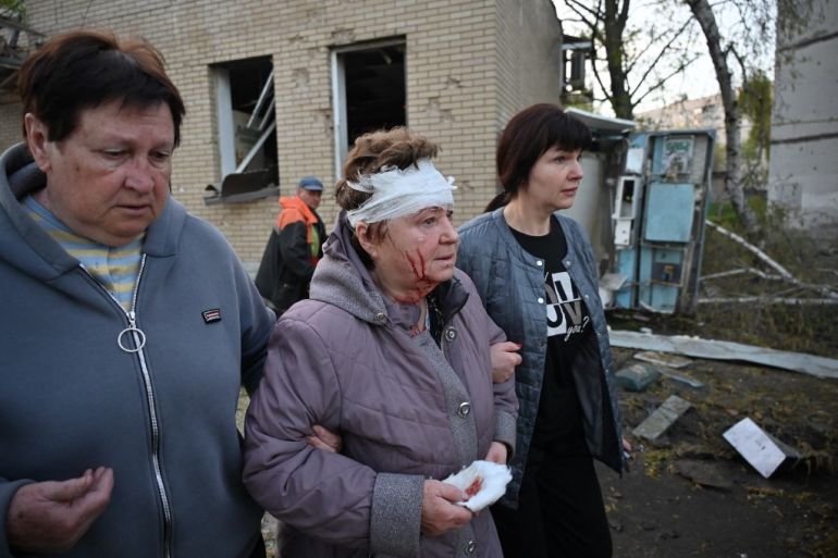 ![An injured woman walks with local residents following strikes in Kharkiv on April 18, 2025 [Sergey Bobok/AFP]](https://www.aljazeera.com/wp-content/uploads/2025/04/000_42Q62PF-1744961201.jpg?resize=770%2C513&quality=80)