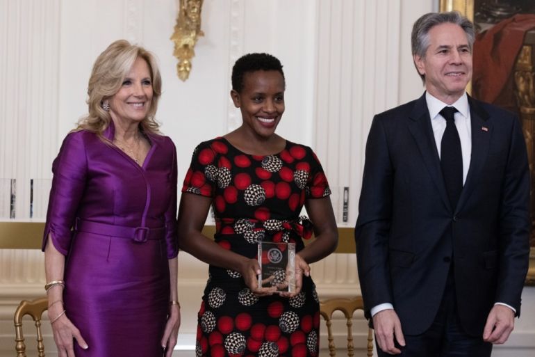 ![Agather Atuhaire (C) of Uganda receiving the International Women of Courage (IWOC) Award by the former US First Lady Jill Biden (L) and the former US Secretary of State Antony Blinken (R) [File: EPA-EFE]](https://www.aljazeera.com/wp-content/uploads/2025/05/12074364-1747991819.jpg?resize=770%2C513&quality=80)