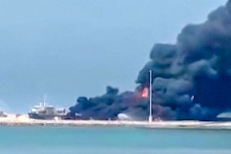 A fire broke out after welding on a barge at the site ignited an explosion, Kourosh Dehghani, the provincial head of the crisis management organisation, told Iranian state television.