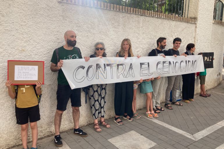 But no matter the number, every morning for the past few weeks at the Jose Hurtado primary school in the Spanish city of Granada, a group of parents have dropped off their kids, then silently gathered nearby behind two simple but powerful pro-Gaza banners: “No more dead children” and “Against Genocide.”