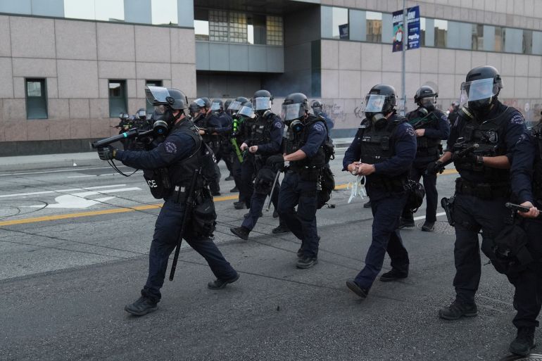 LAPD officers issued dispersal orders and warned protesters that they would be subject to arrest if they remained in the area. To enforce the order, officers in riot gear deployed tear gas, pepper spray and “less-lethal munitions”, including firing rubber bullets to disperse the crowd. A citywide tactical alert was also issued, requiring all LAPD officers to remain on duty.