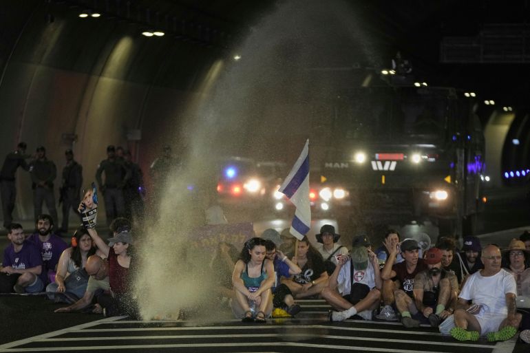 Israeli police make dozens of arrests, use water cannons on protesters who gathered for the nationwide demonstration.