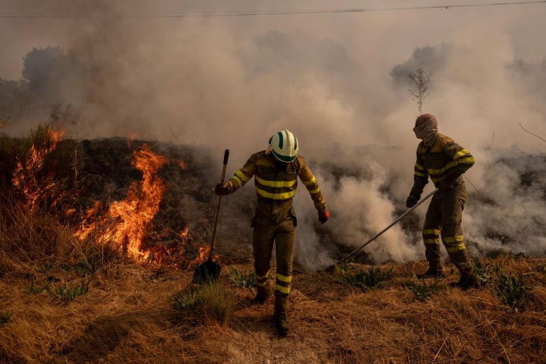 In Portugal, a man died in an accident involving construction equipment being used to contain the flames. He had worked for a company hired to help the northern municipality of Mirandela fight the fires, commander Paulo Santos of the National Civil Protection Authority (ANEPC) told the AFP news agency.