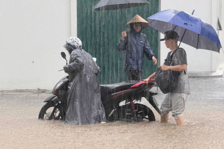 In Hanoi, local media reported that continued heavy rains have caused widespread flooding, submerging streets, stalling vehicles and snarling traffic.