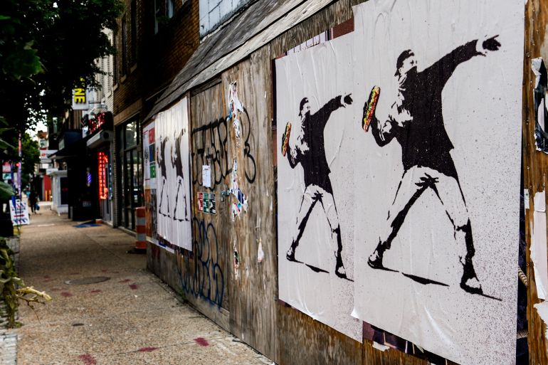 Footage of the incident has since gone viral, and posters in the style of the subversive graffiti artist Banksy have popped up around the city, depicting the infamous sandwich hurl.