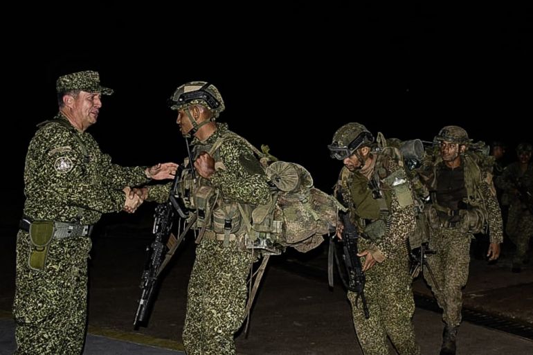 ![Handout picture released by the Colombian Armed Forces press office shows Colombia's Commander of Armed Forces shaking hands with army soldiers after their release in San Jose del Guaviare, Colombia on August 28, 2025. [Colombian Armed Forces/AFP]](https://www.aljazeera.com/wp-content/uploads/2025/08/000_72RL4NT-1756450460.jpg?resize=770%2C513&quality=80)