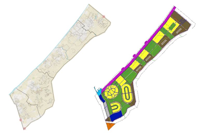 The map below shows which of Gaza’s neighbourhoods and famous landmarks would be transformed into “coastal tourism” areas, “industrial complexes”, “parks”, and “residential areas”.