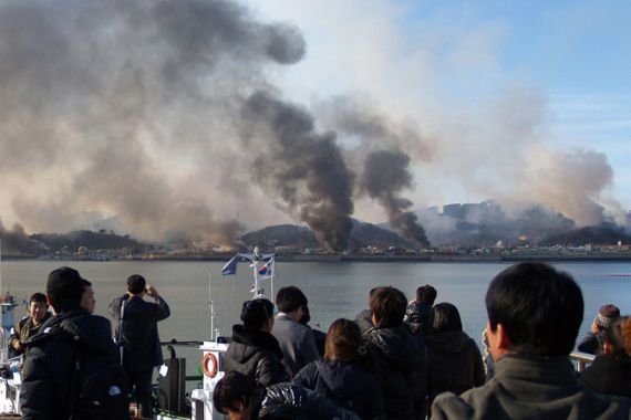 Smoke rising from Yeonpyeong island after shelling