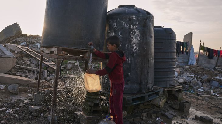![A Palestinian youth collects water from a tank set up in Gaza City, Tuesday, Dec. 30, 2025, amid the rubble of buildings destroyed by Israeli air and ground operations. [File: Jehad Alshrafi/AP]](https://www.aljazeera.com/wp-content/uploads/2026/01/AP25364625196013-1767297418.jpg?resize=730%2C410&quality=80)