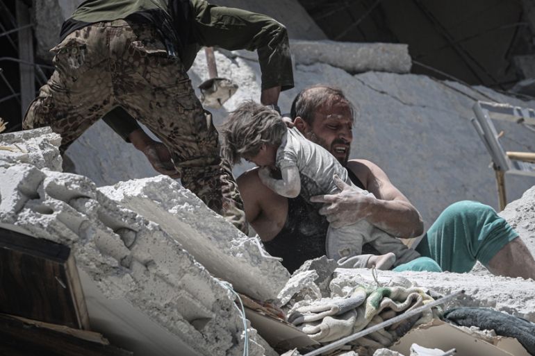 Both the Syrian government and its Russian ally, whose airpower has been critical to Damascus’ military gains in recent years, deny targeting civilians or civilian infrastructure.