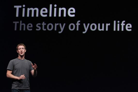 | Mark Zuckerberg announces Timeline as he delivers a keynote address during the Facebook F8 conference [GALLO/GETTY] |