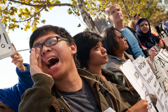 But second, I think it is a strength of the movement to not have a single, united agenda beyond “We are the 99 per cent”. In fact, this is precisely what is so unsettling to those in power, whether in the government or the parties or the CEOs of major corporations: the politics of being present and refusing to go away isn’t about a single agenda that can be engaged, critiqued, mocked, or rejected. It’s hard to characterise the crowds as radical anarchists (though parts of the media continue to perpetuate this fiction) when marines turn out to join the protest wearing their uniforms. When middle-aged unemployed women drive for hours to be a part of this crowd, instead of sending out yet another futile job application. When even parts of the 1 per cent – people who live in relative comfort but whose retirement accounts are evaporating – are making their way to public spaces around the United States to stand in solidarity with others. Those in power can ignore the powerful presence of such diverse and motivated crowds only at their peril.